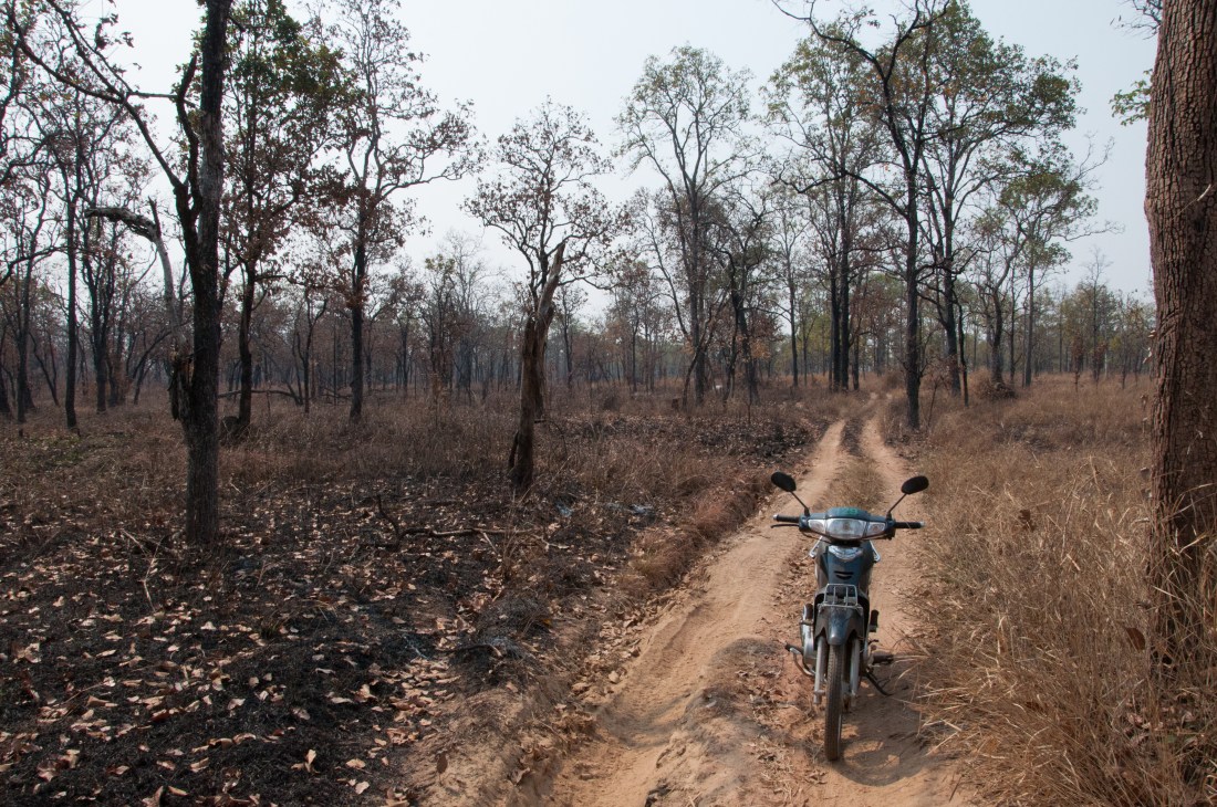 After some time spent in Phnom Penh meeting people and taking Khmer lessons, I moved on to the town of Preah Vihear. WCS bases their operations in the “northern plains” from here and I stayed in their ‘technical-advisor house’. From here I met more of the WCS teams working in the area and made a number of trips into the field. Some of these were directly to sites related to my prospective research, but on others I took the opportunity to join trips that weren’t directly related. These were often exciting camping trips to very remote areas and gave me the chance to see what was going on in the area and to spend some quality time with the WCS team. I felt very privileged to have such access to these spectacular forests, which are not visited by many foreigners, even if it wasn’t without risks! (see the photo below with the knowledge that nobody was hurt)