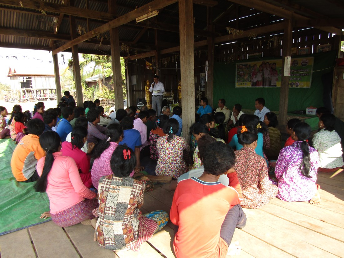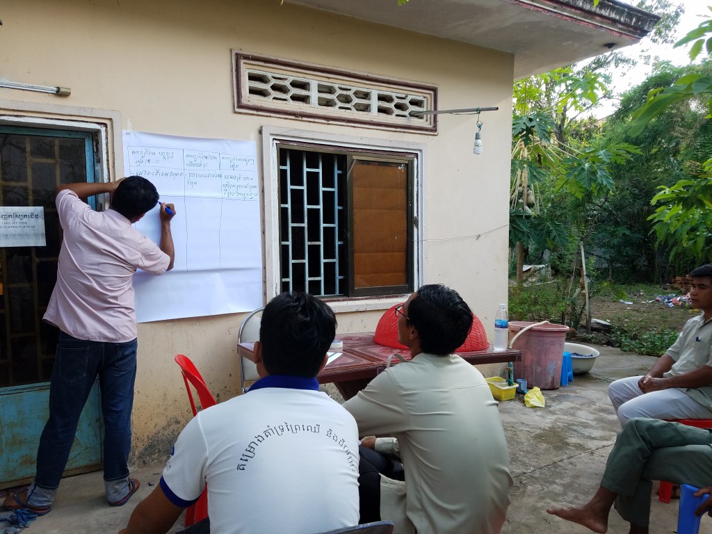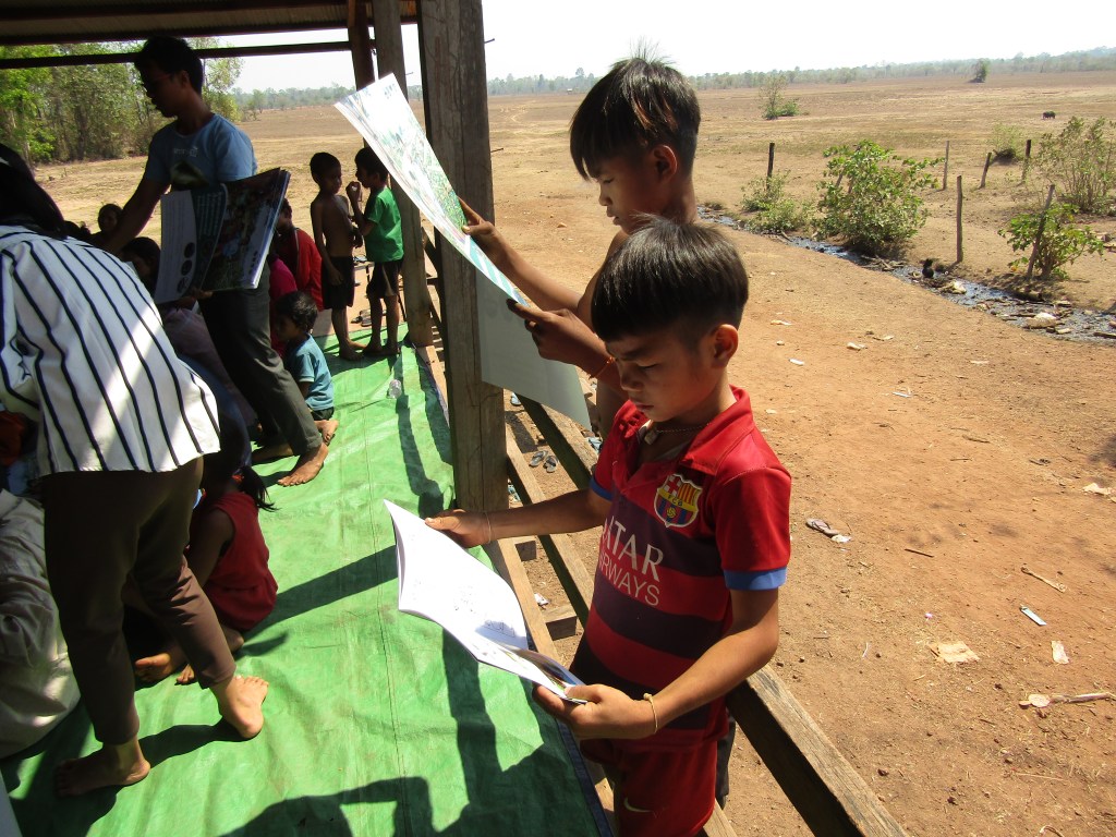 Next we screened a short film that was produced especially for this campaign, together with a filmmaker Phearun Yin. The film told the story of a boy, Chan, who discovers that his friends have been poisoned after bathing in a waterhole. He learns that Vibol, another boy, is responsible and decides to tell the parents of the sick children. There is much debate about what to do, but eventually the parents decide to speak to Vibol’s parents about the issue. She already knows that Vibol plays with poison but didn’t think to do anything about it. Eventually, the village chief persuades them that they should call the poisoning hotline, following which environment staff come to remove the contamination and poison. They reward the kids with a certificate for their bravery in reporting and thank everyone for their cooperation. Everyone lives happily ever after!