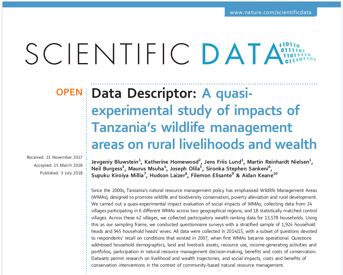 A quasi-experimental study of impacts of Tanzania’s wildlife management areas on rural livelihoods and wealth