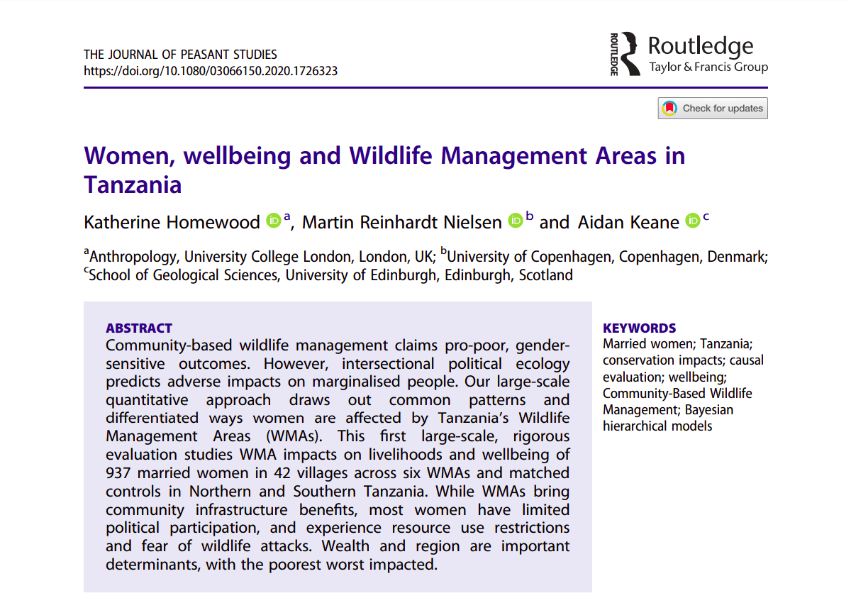 Women, wellbeing and Wildlife Management Areas in Tanzania